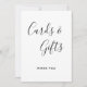 Design de texto de script de caligrafia contemporânea preto-e-branco que diz: "Cartões e presentes Obrigado". Crie suas próprias "Cartas e presentes" 5x7 personalizando a fonte ou cores. O texto moderno e a letra da caligrafia são personalizáveis nesta design. Estas designs são facilmente personalizáveis para combinar com a paleta de cores do seu casamento. Nós podemos personalizar presentes para você também.