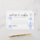 Um cartão de "conselhos e desejos" para uma festa/chá de fraldas de chá de bebê, projetado para o jogo da cápsula do tempo, com um chá doce da China em azul-piscadela e em camadas com rendas brancas (este é um efeito digital), com elegante caligrafia em tom de ouro (este é também um efeito digital).