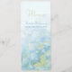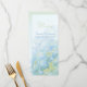 Cartões de menu verticais de hydrangea de casamento em blues e matizes verdes frescos. Personalize esses cartões de menu com seus próprios nomes e palavras de menu. © Fotografia e design por Sarah Trett para www.mylittleedenweddings.com