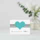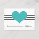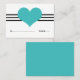 Cartão de Casamento Simples e encantador de Mod Heart Place com uma banda tripla de listras e um coração querido em turquesa. Este doce e minimalista cartão de escolta é perfeito para um casamento moderno e elegante. O espaço é fornecido nesta design para escrever nos nomes e nos números de tabela onde os seus convidados estarão sentados. Clique em "Personalizar" para encontrar opções adicionais de personalização.