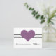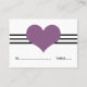 Cartão de Casamento Simples e encantador de Mod Heart Place com uma banda tripla de listras e um coração querido em roxo. Este doce e minimalista cartão de escolta é perfeito para um casamento moderno e elegante. O espaço é fornecido nesta design para escrever nos nomes e nos números de tabela onde os seus convidados estarão sentados. Clique em "Personalizar" para encontrar opções adicionais de personalização.