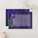 Peacock temed recepção de casamento place cards com gráficos de uma rica aparência de cetim roxo, com sotaques prateados e um pavão colorido decorando a frente esquerda. O texto em branco pode ser personalizado para ler o que você quer. Escreva o nome de cada convidado e o número da tabela nos cartões. Os produtos de casamento correspondentes estão disponíveis.