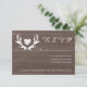 Cartões de casamento RSVP do painel de grãos de madeira rústico do país. Parte de um conjunto de temas. Dê aos seus hóspedes uma maneira de responder se eles estiverem vindo ao seu elegante casamento no verão, primavera ou queda. Este design de colheita combina com convites de recepção de casamento semelhantes. Texto personalizável e qualidade do papel. Tipografia de Script Chic. Lindos gráficos do estilo DIY. Coração de amor desvanecido. Casamento de tema de caça ao ar livre e castanho.