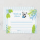 Este cartão de chá de fraldas de panda de menino bonito apresenta folhagem tropical azul e verde em cada canto com linhas onde seus convidados podem escrever em seu conselho para a mãe ser. Há um panda de menino no topo brincando com um carro de brinquedo.