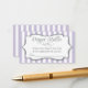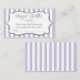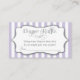Lavanda lilás elegante e Fralda prateada cinza Raffle chá de fraldas inserem cartões para chás de fraldas de menino ou menina. Convide seus convidados para ganhar um prêmio trazendo fraldas para o chá de fraldas! Apresentando listras claras roxas e brancas com quadro de texto brilhante prateado e texto de cinza.