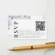 Descubra o atrativo dos nossos clássicos cartões de resposta ao casamento, destacando o florescimento de cor d'água, púrpura, alcaçuz e flores de lavanda. Aumente sua experiência de RSVP com a conveniência adicional de um código QR, fornecendo acesso rápido aos detalhes do casamento e opções de resposta. Sua participação perfeita e na moda começa bem aqui.
