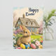 Felz pascoa com esses animais bonitos como coelhinho de Páscoa ou pintinho de bebê. Junte-se à caçada de ovos de Páscoa em primavera com cores vibrantes e alegria, doces e uma fantasia floral vintage. Coelho bonito com flores. Felz pascoa.