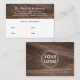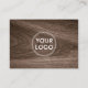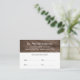 Cartões modernos com o seu logotipo personalizado, fotografia ou outra imagem num fundo de madeira de carvalho marrom no verso. Modelo para o seu nome, hora e data do compromisso e informações de contato na frente.