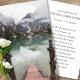 Nossa Carta de Oração serena e corajosa é um tributo pungente para honrar seu amado em meio à beleza tranquila das montanhas de neve, um lago sereno, e uma escada descendo graciosamente até a borda da água. Esta cena pitoresca evoca um sentido de paz, admiração, e o abraço majestoso da beleza primitiva da natureza. Criado com atenção meticulosa aos detalhes, cada carteira de oração oferece consolo e conforto durante uma perda profunda. Sua design capta a essência da tranquilidade da natureza, convidando-os a encontrar consolo na beleza serena das montanhas de neve e do lago tranquilo enquanto seguravam memórias queridas com fé inabalável. No verso está um espaço sagrado para seu verso escolhido — uma mensagem personalizada de amor e memória. Seja uma passagem reconfortante da escritura ou um sentimento sincero, serve como um lembrete pungente do vínculo duradouro que você compartilha com o seu amado falecido. Com as palavras "In Loving Memory of", seguidas do seu nome e datas, o nosso cartão de oração torna-se um bem-estar apreciado, preservando a sua memória para as gerações futuras. Ele transcende o papel, servindo como uma conexão tangível com o espírito deles — um farol de esperança guiando você através de momentos de tristeza. Para além do seu fascínio estético, o nosso cartão de oração tem um significado profundo. É uma fonte de força, um testemunho do legado duradouro de seu ente querido, e um lembrete de que seu espírito vive nos corações daqueles que eles tocaram. Escolher nosso cartão de oração é mais do que apenas honrar sua memória; é abraçar o poder de cura da lembrança. É um gesto de amor, um símbolo de conforto, e um símbolo do vínculo eterno que transcende os limites terrestres. Em momentos de perda, que nosso Cartão de Oração sirva como um santuário tranquilo, oferecendo consolo em meio à beleza das montanhas de neve e do lago sereno. Aproveite o poder da memória com nosso Cartão de Oração, e deixe sua memória amada brilhar intensamente em meio à paisagem pacífica e majestosa.