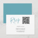 Simplifique o planejamento do seu casamento com nossos cartões de RSVP elegantemente projetados, completos com um código QR conveniente que direciona os convidados ao site do seu casamento para respostas fáceis. Esses cartões sofisticados não são apenas práticos; eles são um componente estiloso da papelaria do seu casamento, apresentando uma cor azul turquesa vibrante no verso que adiciona um toque refrescante de cor e complementa qualquer tema de casamento, especialmente aqueles com elementos ousados ou costeiros.