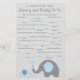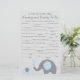 Use nossos cartões de conselho para chá de bebê temáticos de elefante azul e cinza de uma maneira divertida e única para deixar seus conselhos e desejos. O cartão tem frases como "Certifique-se de sempre ter ___________ na bolsa de fraldas" e para ter certeza de "_____________ o bebê todos os dias."