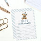 Cartões de chá de fraldas, jogos, gravatas, de peluche azul-aquarela. Chá de fraldas. Respostas: 1. fralda 2. Bocal 3. Pacificador 4. Fórmula 5. gravidez 7. Cisterna 8. cadeirinha 9. frasco 10. viveiro