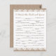 Nossos cartões de aviso de arrombamento e de preenchimento de cadáveres são uma atividade divertida para se ter uma recepção de casamento ou um chá de panela. Você pode mudar o texto do título, se quiser, usando a ferramenta "Personalizar esta modelo" de Zazzle. Certifique-se de verificar nossa grande seleção de itens coordenadores navegando na coleção Burlap e Lace Wedding!