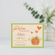 Estes cartões de conselho de abóbora são perfeitos para quem celebra um chá de fraldas neste outono. A design apresenta uma linda abóbora laranja e verde com corações amorosos e palavras de modelo fáceis de personalizar. Itens correspondentes podem ser encontrados na coleção.