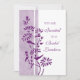Convites de lua de noiva em elegante ameixa roxa e design floral branca, elegante e feminina, personalizável com seus detalhes de chá. Também disponível em cartões de agradecimento e convites para a festa noiva.