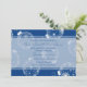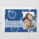 Convites de fotos de Natal em azul clássico e branco com decorações elegantes com padrão de floco de neve, personalizáveis com seus detalhes de casamento e sua própria foto. Disponível em carimbos de férias de inverno, envelopes, etiquetas e cartões correspondentes.