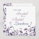 Convites de almoço em elegante design floral roxo, branco e azul escuro, elegante e feminino, personalizável com seus detalhes de chá. Também disponível em cartões de agradecimento e convites para a festa noiva.