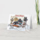 Três Akita bonitos na cena do inverno com cumprimentos da estação para os feriados do Natal são um cartão colorido pelo design de Friskybizpet.