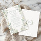 Mergulhe na elegância moderna com este cartão de detalhes para um casamento botânico romântico. Decorado com folhagens, folhas de eucalipto e uma grinalda floral de rosa branca, este cartão adiciona um toque moderno à sua celebração rústica de verão ou outono. Personalize-o com um monograma opcional no verso para aumentar a sofisticação do seu casamento.