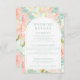 Realce a papelaria do seu casamento com nosso cartão de detalhes de casamento elegante e romântico. Este lindo cartão apresenta um monograma de noiva e noivo no verso, colocado contra um delicado desenho floral de peônia rosa e pêssego sobre um fundo de menta/verde aqua. A caligrafia minimalista simples, elegantemente exibida em um arco boêmio, adiciona um toque de sofisticação clássica. Perfeito para adicionar um toque atemporal e refinado à sua celebração de casamento. Ideal para casamentos de primavera e verão com tema botânico ou boho.