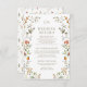 Mergulhe na elegância contemporânea com este cartão de detalhes rústico projetado para um romântico casamento botânico. Adornada com coroa floral entrelaçada com flores cor de laranja/prata vermelha, flores silvestres de outono e folhas verdes. Este cartão personalizável permite personalizar sua experiência de casamento, aprimorando a sofisticação geral de seu verão rústico ou celebração de outono.