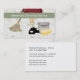 Modelo original do cartão de empresa de serviços da limpeza com um cobrir à moda que inclui a senhora abstrata do fundo e de limpeza no fundo com um espanador, uma esponja, e um balde do espanador pronto para obter começado. Projetado para negócios comerciais ou residenciais da limpeza.