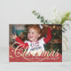 Tipografia vermelha e Dourado do cartão com fotos do feriado do Natal com pia batismal do roteiro.