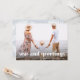 Este divertido cartão de Natal tropical apresenta uma foto de cheio com uma camada de "mares e saudações" em tipografia branca e branca na frente, e um impressão de folha de palma branco e azul-macio na parte de trás do cartão.