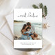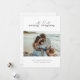 Celebre o Natal mais feliz com um cartão com fotos da família da praia que traz vibrações quentes no lado do oceano para a temporada de festas! Esta carta moderna e elegante apresenta um roteiro de caligrafia para uma aparência simples e alegre. Perfeito para os desejos cristãos de Natal, é uma maneira fofa e amigável de compartilhar alegria festiva.