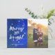 Deseje a todos um feliz Natal com este simples e elegante cartão de "alegria do amor pela paz", escrito à mão, personalizado com sua própria foto e mensagem da família, com lindas gravações manuscritas e tipografia em cor d'água vermelha e com aquarela um padrão de traços no verso.