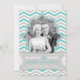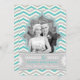 Padrão moderno e Feliz e na moda casado, padrão de natal de Natal, cartão com fotos de Natal, em azul-turquesa, cinza, marfim. Há um quadro com sua foto de casamento no centro e um quadro de cinza com seu texto e flocos de neve brancos. Um design de zague na moda a ziguezague usando as listras clássicas com aparência contemporânea. Personalize com seu texto. Um cartão moderno para enviar para os recém-casados Saudações da Primeira Estação de Natal.