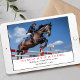 Mostre seu amor por cavalos e cavalgar nesta temporada de festas com uma Cartões de foto de Natal para equestribos com a legenda "Que divertido é andar." As costas têm espaço para mais três fotos quadradas e uma legenda e assinatura. Perfeito para equestrianos de todas as idades e níveis de habilidades, este cartão é uma forma excelente de manter contato com amigos e familiares que compartilham sua paixão por cavalos. Peça o seu hoje e espalhe a alegria de andar!