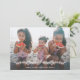 Um belo design de fotos de cheio com um design preto desenhado à mão em branco para um cartão com fotos na moda de feriado. Um padrão festivo nas costas.