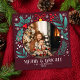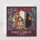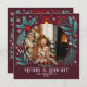 Esta placa de feriado de uma foto, completamente personalizável, apresenta botânicos do inverno de cor d'água pintados manualmente em volta de uma moldura em forma de ornamento da sua foto contra um fundo vermelho de amora. O inverso apresenta uma mensagem especial que você pode personalizar para enviar para seus destinatários. Quer personalizar ainda mais? Clique em "Editar usando a Ferramenta de Design." Imagem de espaço reservado e NÃO está à venda. Substitua-o pela sua foto.