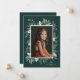 Este cartão de feriado com uma fotografia contém borda botânica com folhas e bagas pintadas à mão.