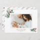 Um delicado e mínimo design de cartão de feriado com foto, folhagem de inverno e "natal alegre".