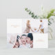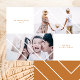 Quadro geométrico branco elegante com duas fotos e cartão de Natal dourado de tipografia mínima.