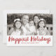 O Cartões de foto de Natal Red Script Holidays mais Feliz foi projetado para ser um cartão de Natal simples e moderno - perfeito para esta temporada de inverno. Isto está disponível com um carimbo de correio correspondente, por isso certifique-se de que está a verificar a nossa coleção de correio para obter atualizações!
