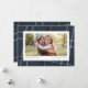 Uma xadrez azul marinho tradicional ganha uma reviravolta moderna neste cartão de feriado horizontal de uma foto. Personalize com sua própria saudação e nome. A xadrez de marinho clássica enquadra sua foto de família e coordena-se com a coleção de xadrezes moderna de Lea Delaveris de decoração doméstica e artigos de papel de feriado.