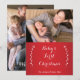Cartões de foto de Natal do primeiro ano do bebê vermelhos e brancos com texto mutável e foto da família - você pode adicionar sua foto, nome da família e ano.