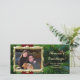 Adicione sua foto e mensagem personalizada a este fundo luxuoso do pinheiro com uma estrutura dourada e um cartões de fotos profundo de fita vermelha. O cartão perfeito para um retrato da família, orientação horizontal.