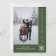 Espalhe a alegria festiva com este elegante Cartões de foto de Natal verde Simples Floco de Neve, perfeito para compartilhar Cartões de natal sentidos. Apresentando sua querida foto familiar, enquadrada por um elegante quadro branco de linha e realçada com um delicado design de floco de neve, este cartão mostra a tipografia moderna com uma mensagem quente de "Feliz Natal" e seu nome de família. O tema minimalista e o layout moderno criam uma saudação de fotos de feriado na moda. Criada com impressão de alta qualidade, essa placa garante cores vibrantes e detalhes nítidos. Personalize com sua foto familiar, seu nome e mensagem de feriado personalizada para criar uma lembrança memorável e sofisticada para seus entes queridos!