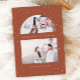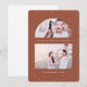 Este belo aterramento e este cartão de Natal branco de neve apresenta uma grelha de imagens de arco, que lembra os clássicos globos de neve de feriado, e apresenta duas das suas fotografias familiares favoritas.