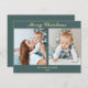 Foto da família de Natal. Cartões de fotos em cores de turquesa de menta e baunilha com duas fotos. Horizontal.
