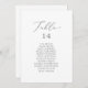 Estes delicados cartões de assentos de mesa prateada são perfeitos para um casamento moderno. A design romântica minimalista apresenta uma magnífica e elegante tipografia de cinza prateada num fundo branco com um aspecto simples e limpo. A placa impressão na frente e atrás (lado duplo).