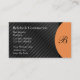 Cartões de indústria da construção com design moderno que inclui um monograma da empresa, o emblema alaranjado, fundo preto moderno, e texto que você pode facilmente personalizar e personalizar. Projetado como um modelo de cartão de negócios para uma empresa de construção civil, um construtor, ou um contratante de construção.