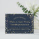 Placas de informação de casamento azul-marinho de ouro brilhante para elogiar nosso conjunto de convites com cores de fundo e texto elegante de ouro.