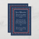 Parte da Coleção de Casamentos Militares Patriótica que apresenta um conjunto completo de convites. Padrões vermelhos brancos e azuis com bordas estelares fornecem uma aparência elegante e instantânea. Ideal para locais de casamento patrióticos e/ou militares.
