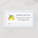 Lindos limões de aquarela com fundo listrado azul e branco, bilhete de rifa de fralda de bebê.
