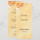 © Sunny Mars Designs - Floral Hibiscus: Ivory and Dourado Wedding Jante Menu Rackcards - Este cartão de menu recepção de casamento janta apresenta uma ilustração de uma decoração floral de marfim e pêssego suja.